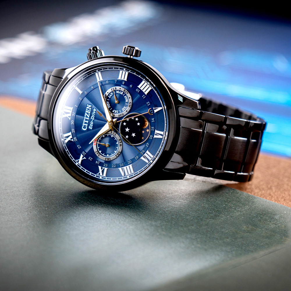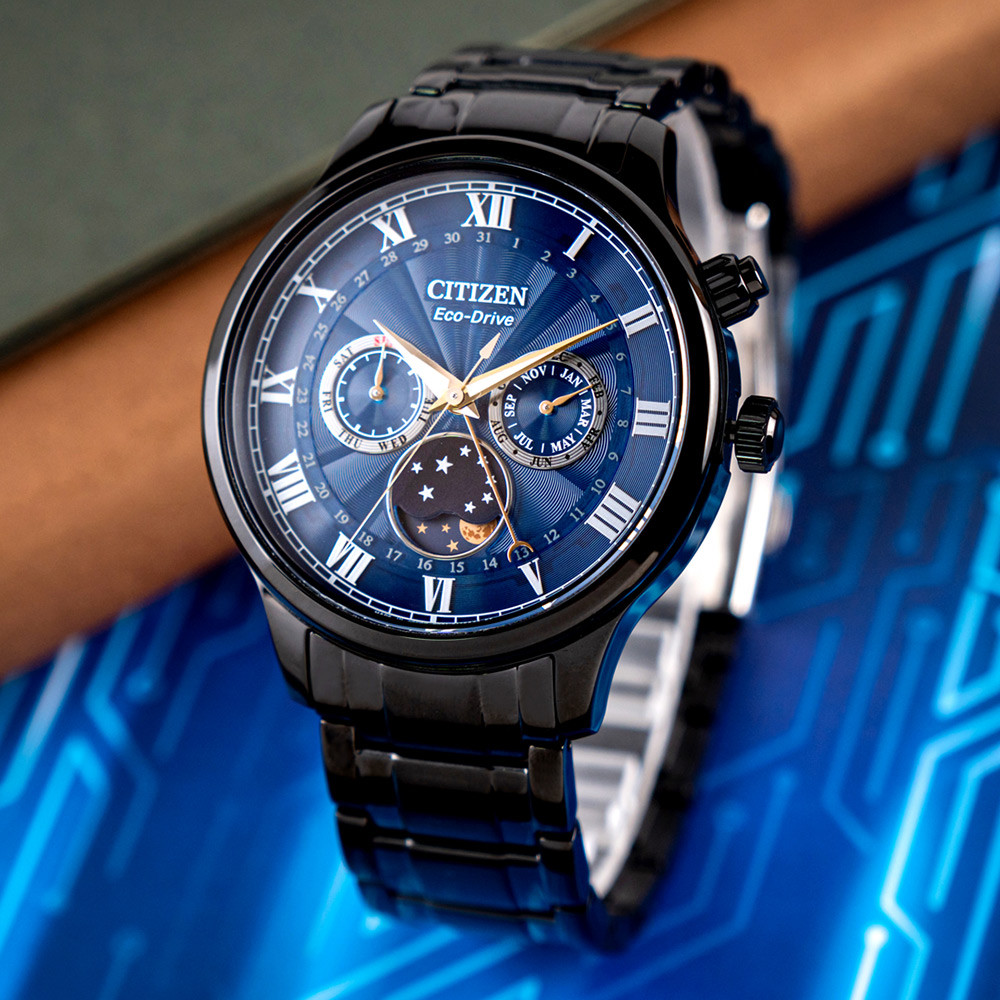 CITIZEN Eco-Drive AP1055-87L – mẫu nam xuất xứ từ Nhật Bản, sử dụng bộ máy Eco-Drive độc quyền của hãng Citizen, chuyển hóa mọi nguồn sáng thành năng lượng, không cần thay pin thường xuyên (5-7 năm). Mặt đồng hồ màu xanh chủ đạo nam tính, cuốn hút. Vỏ và dây được bằng thép không gỉ 316L mạ ion PVD cao cấp chắc chắn, bền bỉ. Bộ kim dạ quang, hỗ trợ xem giờ trong điều kiện thiếu sáng. Chống nước 50m thoải mái đi mưa và rửa tay.