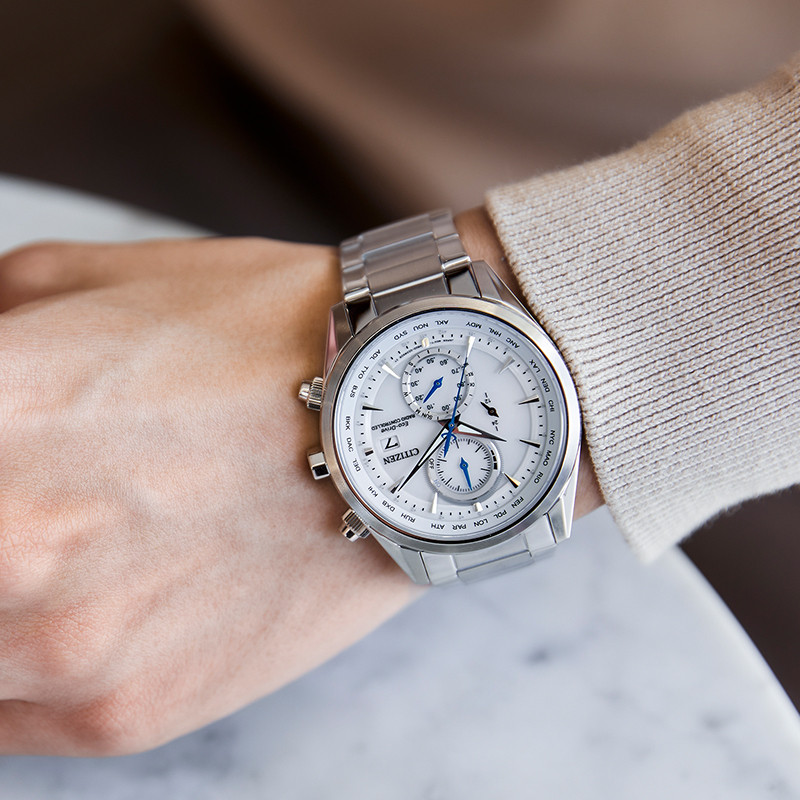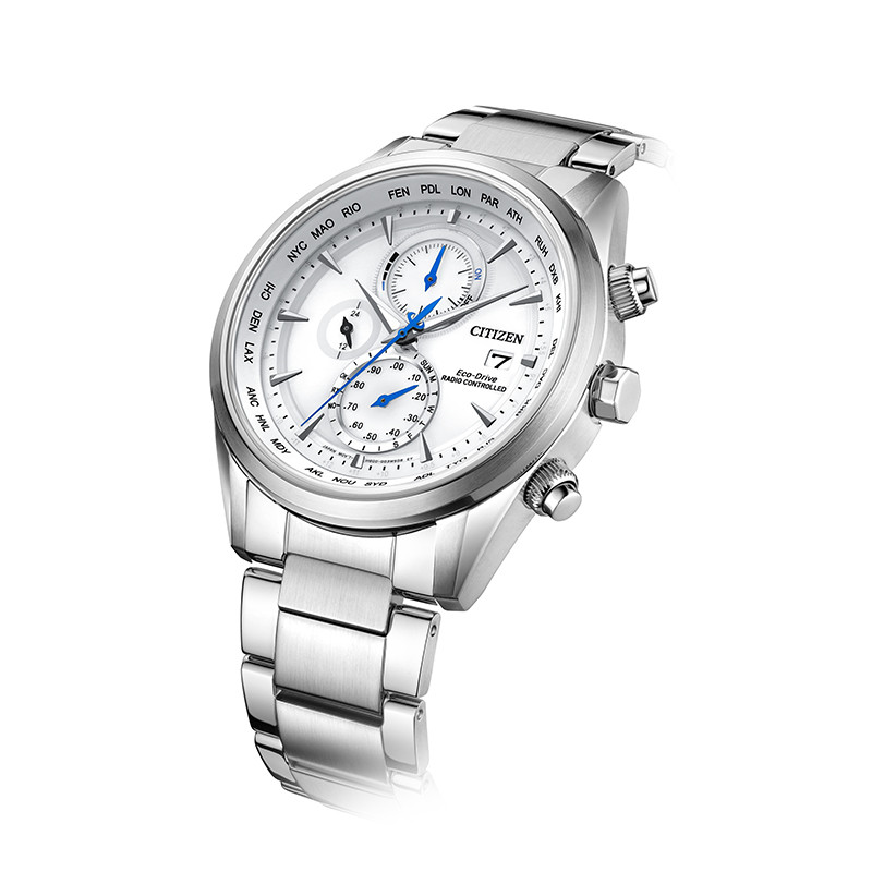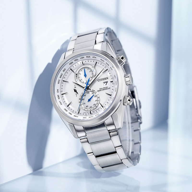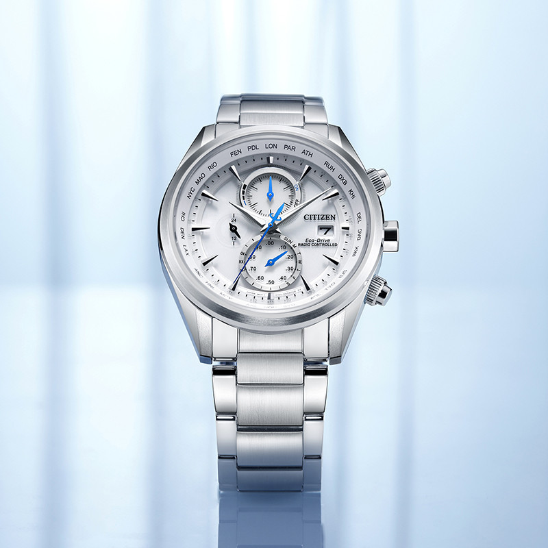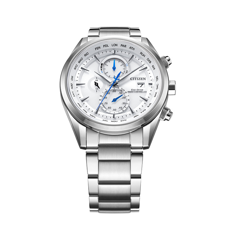 CITIZEN Eco-Drive AT8260-85A – mẫu nam xuất xứ từ Nhật Bản, sử dụng bộ máy Eco-Drive độc quyền của hãng Citizen, chuyển hóa mọi nguồn sáng thành năng lượng, không cần thay pin thường xuyên (5-7 năm). Một chiếc đồng hồ chronograph có thời gian 12/24 giờ xuất hiện trong mặt số màu trắng nổi bật. Vỏ và dây được làm bằng thép chống gỉ 316L cao cấp. Mặt kính Sapphire hạn chế trầy xước tốt. Tính năng Radio Controlled tự động cập nhật giờ theo sóng Radio thế giới. Tính năng Chronograph bấm giờ thể thao năng động. Có lịch ngày vị trí 3h. Phù hợp với các anh chàng yêu thích thể thao, năng động. Khả năng chống nước là 100M có thể đi mưa và rửa tay.