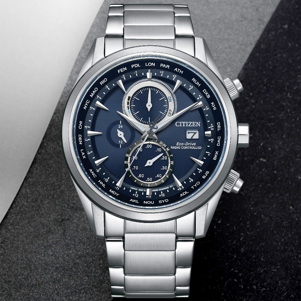 CITIZEN Eco-Drive AT8260-85L – mẫu nam xuất xứ từ Nhật Bản, sử dụng bộ máy Eco-Drive độc quyền của hãng Citizen, chuyển hóa mọi nguồn sáng thành năng lượng, không cần thay pin thường xuyên (5-7 năm). Một chiếc đồng hồ chronograph có thời gian 12/24 giờ xuất hiện trong mặt số màu xanh nổi bật. Vỏ và dây được làm bằng thép chống gỉ 316L cao cấp. Mặt kính Sapphire hạn chế trầy xước tốt. Tính năng Radio Controlled tự động cập nhật giờ theo sóng Radio thế giới. Tính năng Chronograph bấm giờ thể thao năng động. Có lịch ngày vị trí 3h. Phù hợp với các anh chàng yêu thích thể thao, năng động. Khả năng chống nước là 100M có thể đi mưa và rửa tay.