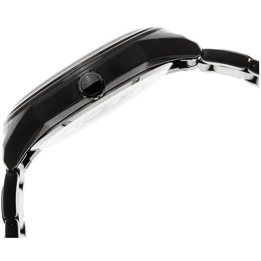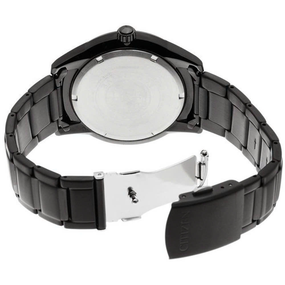 Thiết kế: Mặt số đen sang trọng, nổi bật với viền mạ đen và các cọc số ánh kim, tạo điểm nhấn tinh tế và đẳng cấp.