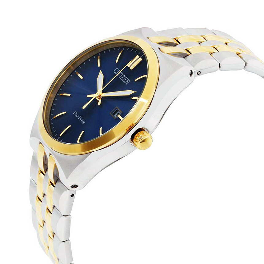 CITIZEN ECo-Drive BM7334-58L – mẫu nam xuất xứ từ Nhật Bản, sử dụng bộ máy Eco-Drive độc quyền của hãng Citizen, chuyển hóa mọi nguồn sáng thành năng lượng, không cần thay pin thường xuyên (5-7 năm). Mặt số tông màu xanh chủ đạo nam tính, cuốn hút. Vỏ và dây được làm bằng thép không gỉ 316L demi mạ vàng PVD cao cấp chắc chắn, bền bỉ. Mặt kính khoáng cứng chống trầy, chịu lực tốt; khả năng chống nước 100m đủ để chịu nước khi đi tắm, đi bơi, lặn nông dưới nước.