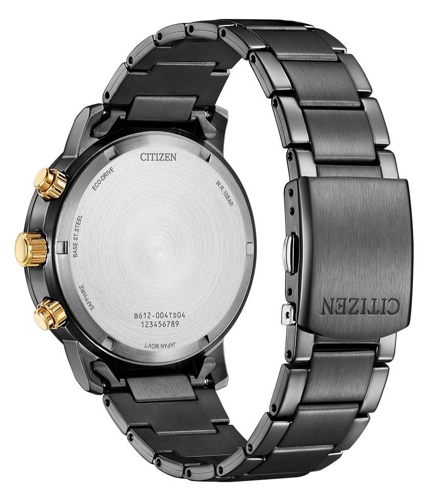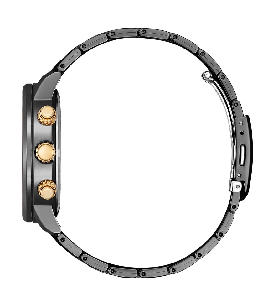CITIZEN Promaster Chronograph CA0846-81E – mẫu nam xuất xứ từ Nhật Bản, sử dụng bộ máy Eco-Drive độc quyền của hãng Citizen, chuyển hóa mọi nguồn sáng thành năng lượng, không cần thay pin thường xuyên (5-7 năm). Tính năng Chronograph bấm giờ thể thao năng động. Màu đen chủ đạo nam tính, cuốn hút. Vỏ và dây đồng hồ được làm bằng thép không gỉ 316L mạ ion PVD cao cấp chắc chắn, bền bỉ. Bộ kim và cọc số dạ quang, hỗ trợ xem giờ trong điều kiện thiếu sáng. Chống nước 100m thoải mái bơi lặn.