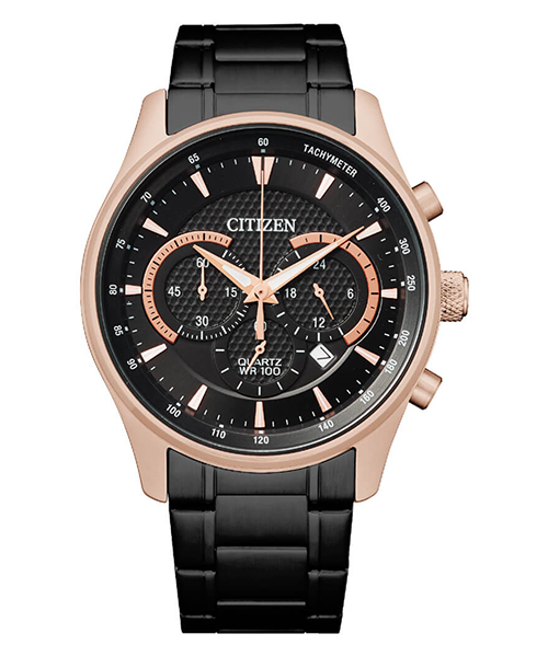 Đồng hồ CITIZEN Quartz AN8196-55E mẫu nam xuất xứ từ Nhật Bản, sử dụng bộ máy pin hoạt động chính xác và bền bỉ. Mặt kính khoáng cứng chịu lực tốt. Vỏ được làm từ chất liệu thép không gỉ 316L mạ vàng hồng PVD và dây thép không gỉ 316L mạ ion PVD cao cấp. Khả năng chống nước là 100M có thể đi mưa và rửa tay.
