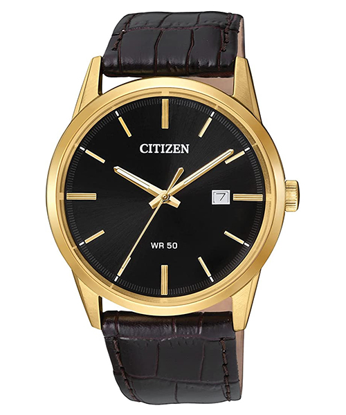 Đồng hồ CITIZEN Quartz BI5002-06E – mẫu nam xuất xứ từ Nhật Bản, sử dụng bộ máy pin hoạt động chính xác và bền bỉ. Mặt kính khoáng cứng chịu lực tốt. Vỏ được làm từ chất liệu thép không gỉ 316L mạ vàng PVD kèm với dây da cao cấp. Khả năng chống nước là 50M có thể đi mưa và rửa tay.