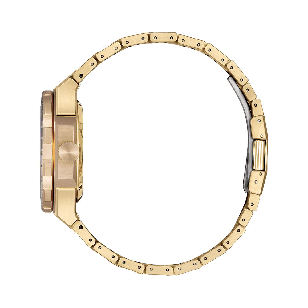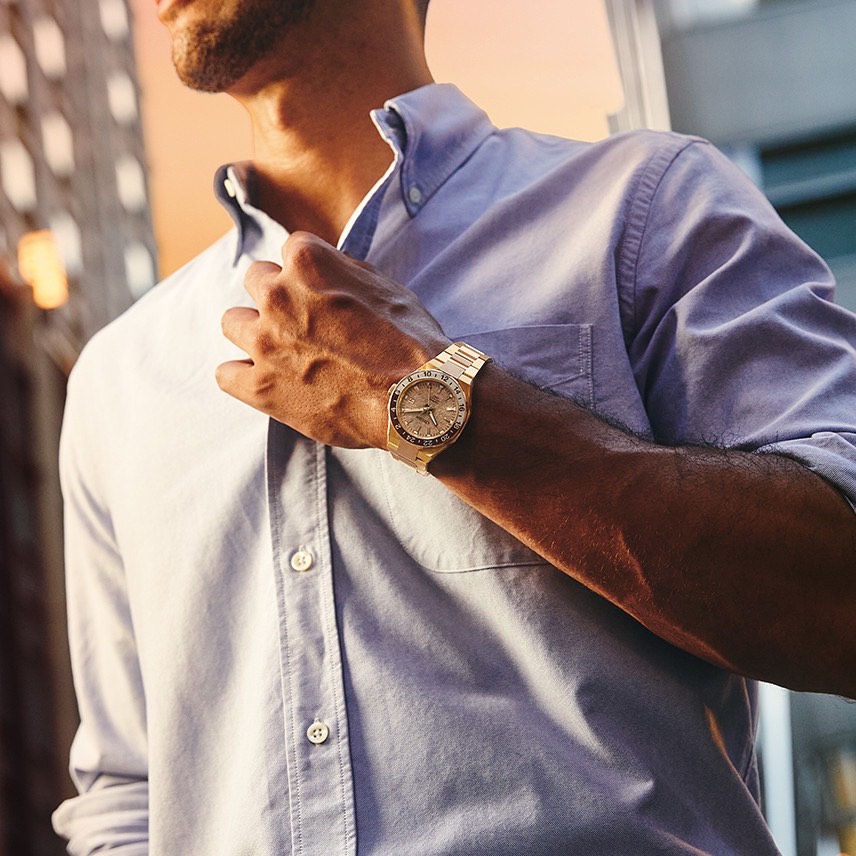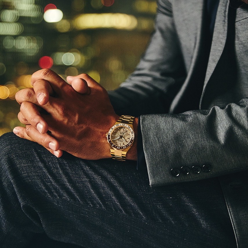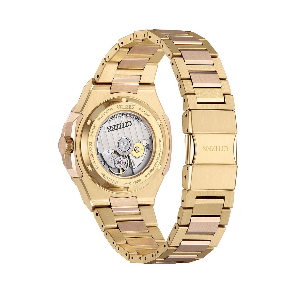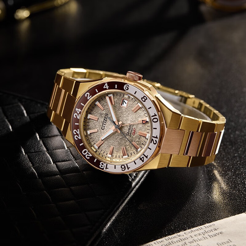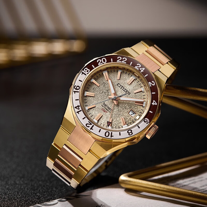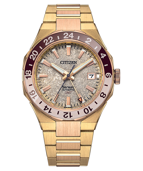 CITIZEN Series 8 NB6032-53P – Chức năng và thiết thực, hiện đại và thể thao – Citizen Series 8 GMT mới là người bạn đồng hành hoàn hảo từ trang phục hàng ngày đến những chuyến du lịch đầy hứng khởi và mọi thứ ở giữa. Bộ sưu tập đồng hồ cơ Citizen Series 8 được thiết kế lại có thiết kế nâng cao và chuyển động tự động hiệu suất cao với khả năng chống từ tính được cải thiện để phù hợp với mọi dịp, và chiếc đồng hồ GMT du lịch mới này là một sự bổ sung ấn tượng. Với kim giờ có thể được thiết lập độc lập, cấu trúc vỏ bốn mảnh xác định thiết kế của vỏ thép không gỉ 41mm tông màu vàng được đánh bóng và chải xước, tạo khung cho vẻ ngoài, với dây đeo bằng thép không gỉ ba mắt tích hợp cố định đồng hồ trên cổ tay và tăng thêm nét thể thao hiện đại khi đeo. Vành bezel hai chiều màu nâu và vàng nằm ở giữa mặt số tông màu vàng có kết cấu với thang đo GMT 24 giờ hai tông màu, nhấp chính xác vào mỗi vòng quay, trong đó màn hình hiển thị ngày được đóng khung ở vị trí 3 giờ cung cấp tiện ích hàng ngày, trong khi kim có đầu màu cam hỗ trợ theo dõi nhiều múi giờ. Chống nước ở độ sâu lên đến 100 mét. Calibre 9054.