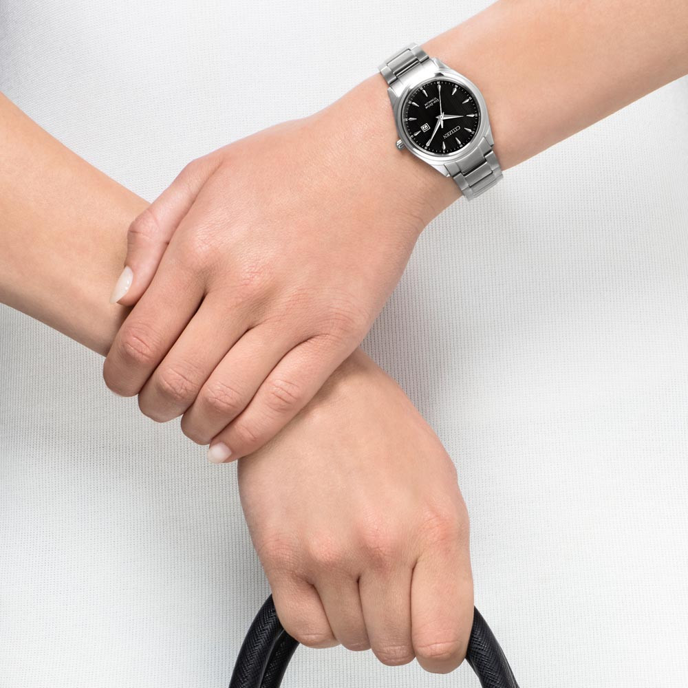 CITIZEN Eco-Drive EW2470-87E – mẫu nữ xuất xứ từ Nhật Bản, sử dụng bộ máy Eco-Drive độc quyền của hãng Citizen, chuyển hóa mọi nguồn sáng thành năng lượng, không cần thay pin thường xuyên (5-7 năm). Với kiểu dáng độc đáo, vỏ và dây được làm bằng chất liệu Titanium sang trọng dành cho các quý cô. Mặt Kính Sapphire hạn chế trầy xước, khả năng chống nước là 50M có thể đi mưa và rửa tay.