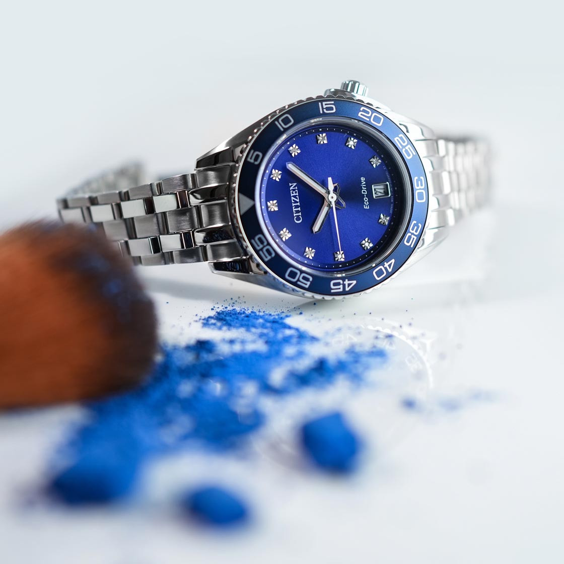 Đồng hồ CITIZEN Eco-Drive FE6160-57L – mẫu nữ xuất xứ từ Nhật Bản, sử dụng bộ máy Eco-Drive độc quyền của hãng Citizen, chuyển hóa mọi nguồn sáng thành năng lượng, không cần thay pin thường xuyên (5-7 năm). Mặt kính Sapphire chống xước tốt. Vỏ và dây được làm từ chất liệu thép không gỉ 316L cao cấp. Khả năng chống nước là 100M có thể đi mưa và bơi lội.