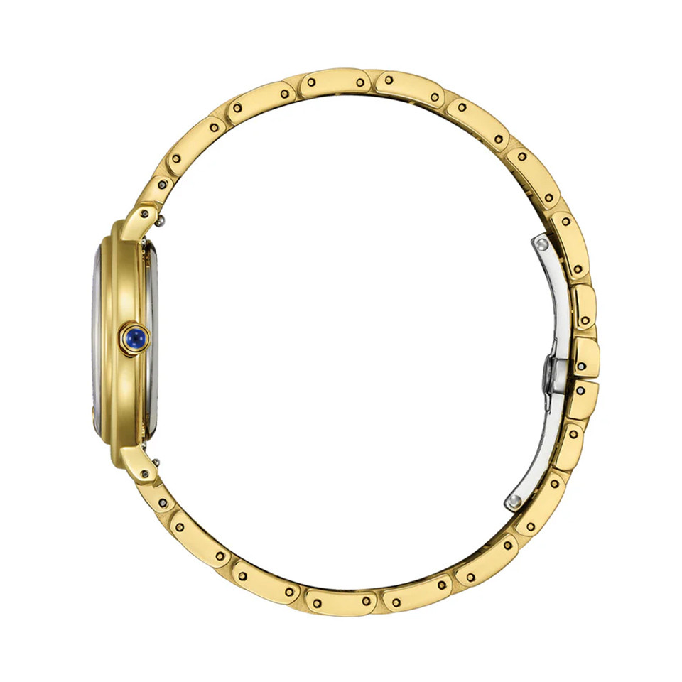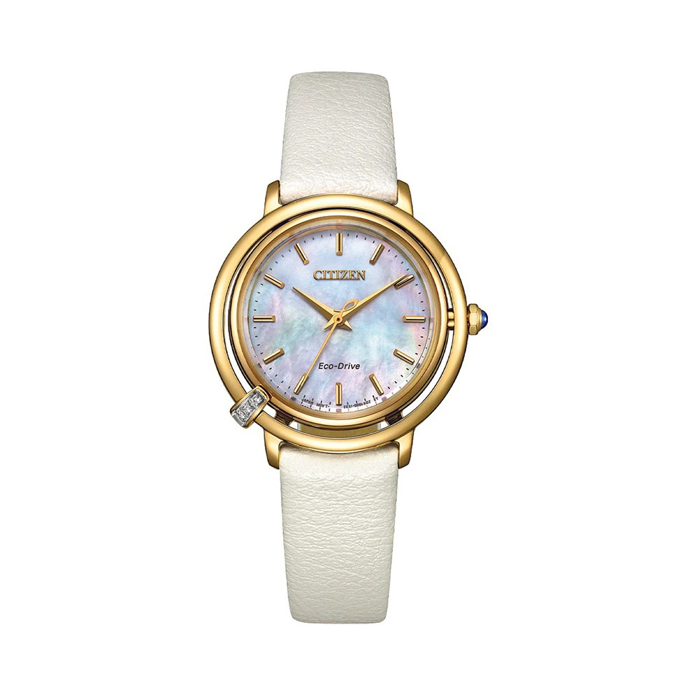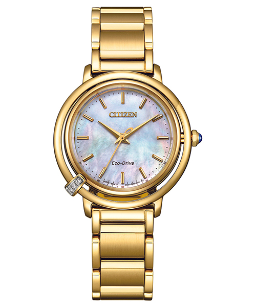CITIZEN L EM1092-64D – mẫu nữ xuất xứ từ Nhật Bản, sử dụng bộ máy Eco-Drive độc quyền của hãng Citizen, chuyển hóa mọi nguồn sáng thành năng lượng, không cần thay pin thường xuyên. Vỏ và dây được làm bằng thép không gỉ 316L mạ vàng PVD cao cấp chắc chắn, bền bỉ. Mặt kính Sapphire chịu lực tốt; khả năng chống nước 50m đủ để chịu nước khi đi mưa và rửa tay.