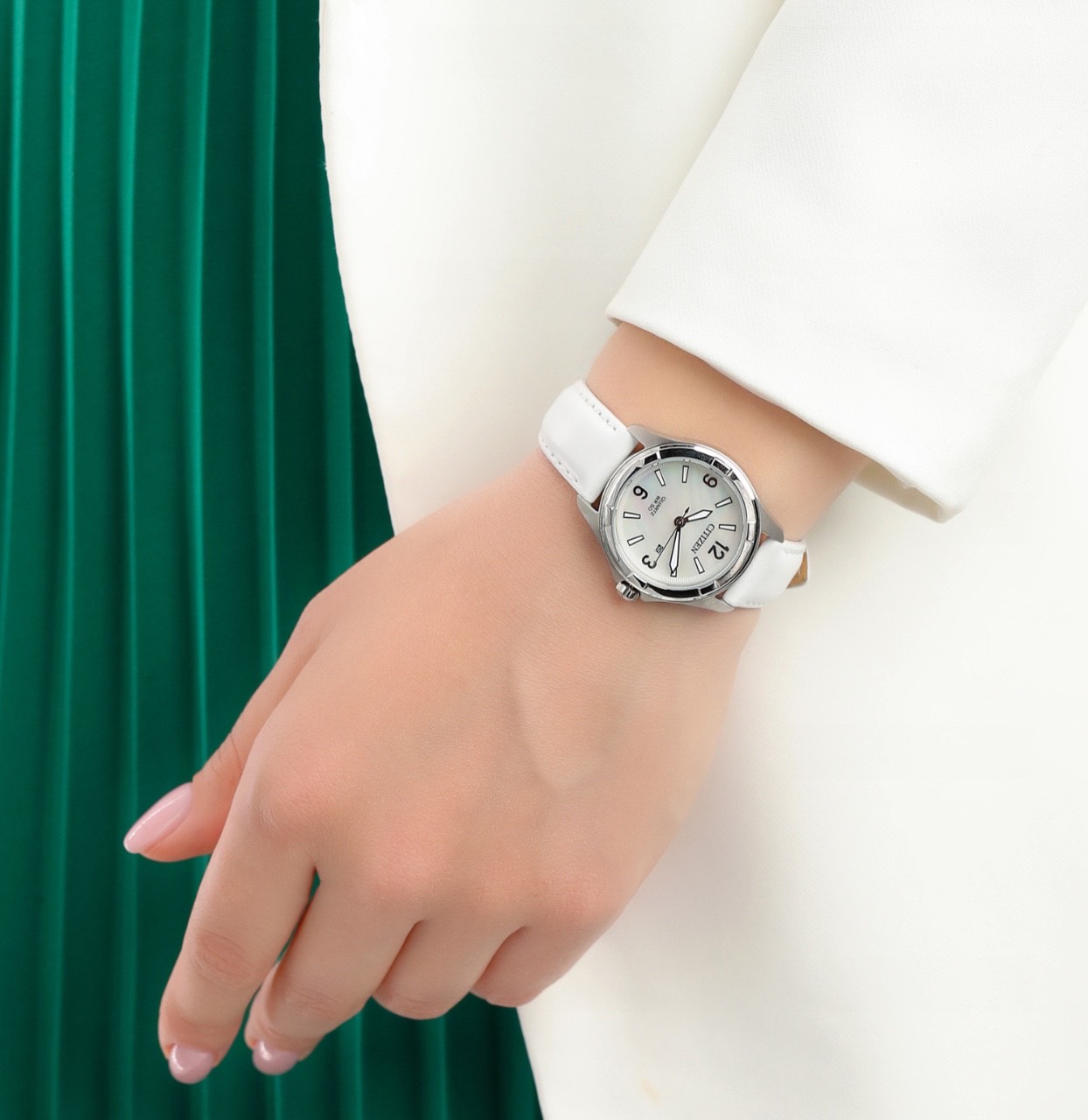Đồng hồ CITIZEN Quartz EU6080-07D – mẫu nữ xuất xứ từ Nhật Bản, sử dụng bộ máy pin hoạt động chính xác và bền bỉ. Mặt kính khoáng cứng chịu lực tốt. Vỏ được làm từ chất liệu thép không gỉ 316L kèm với dây da cao cấp. Khả năng chống nước là 50M có thể đi mưa và rửa tay.
